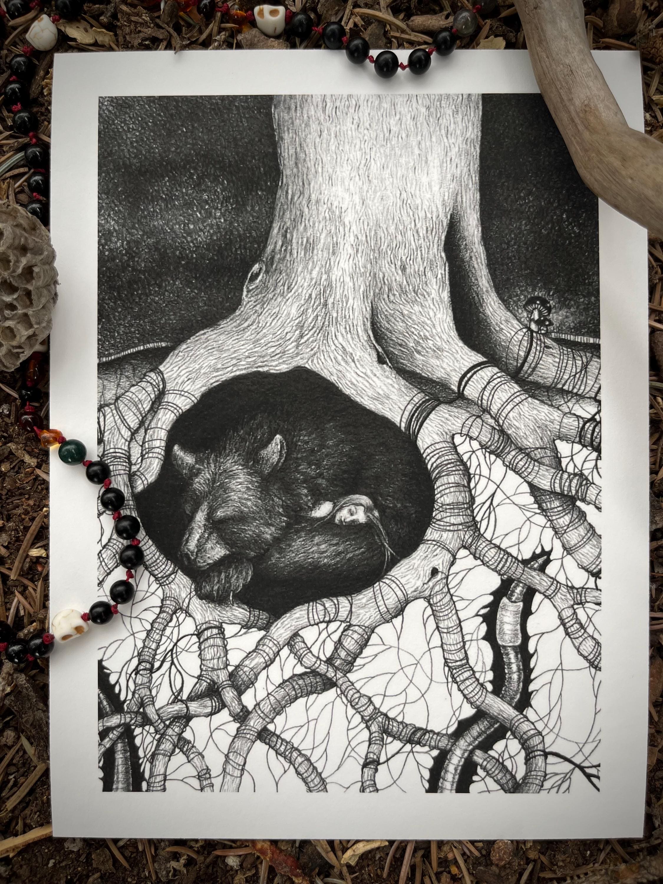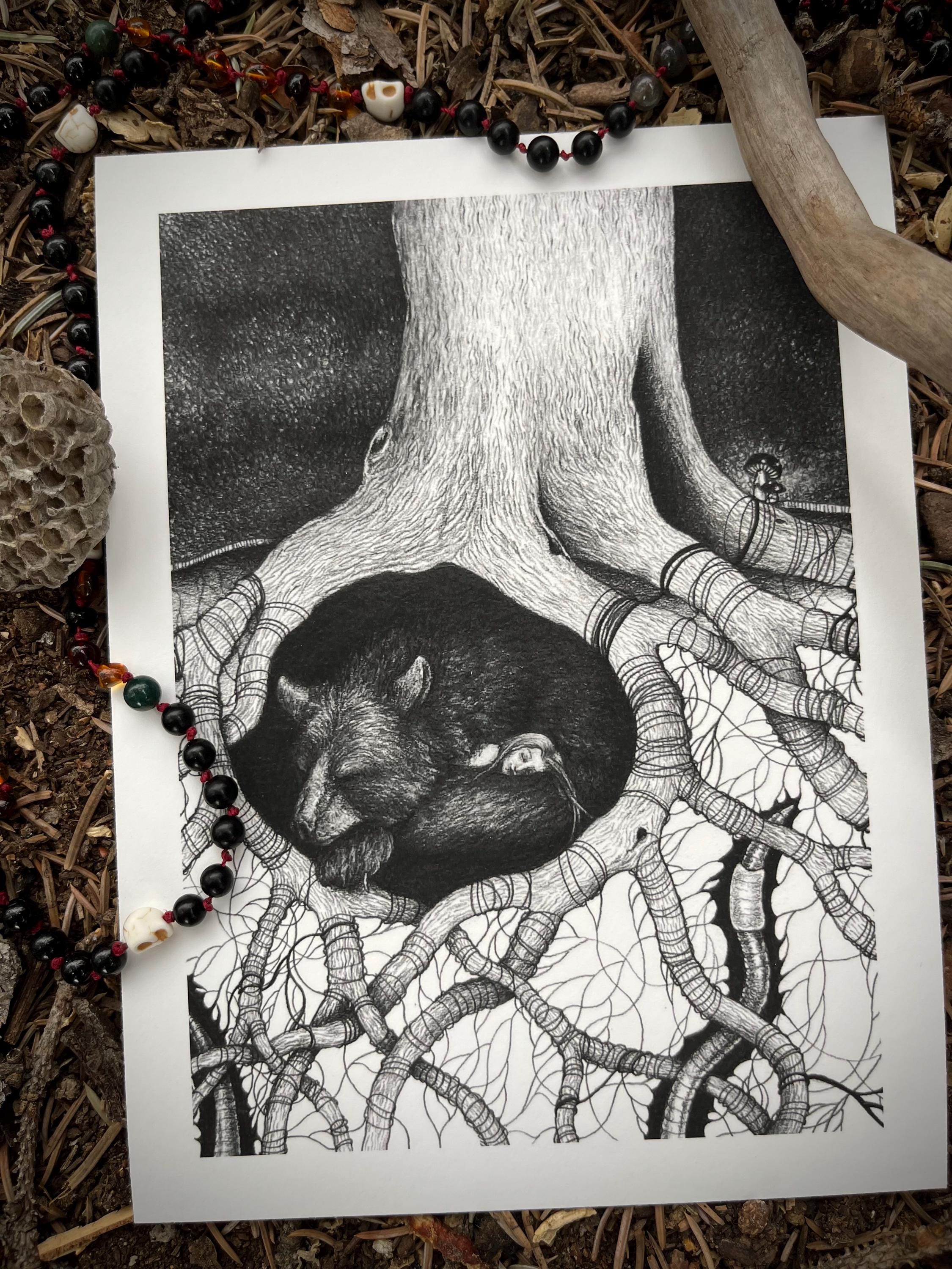 This listing is for one signed and numbered fine giclee print of my original graphite illustration: “Sleeping Bear.”