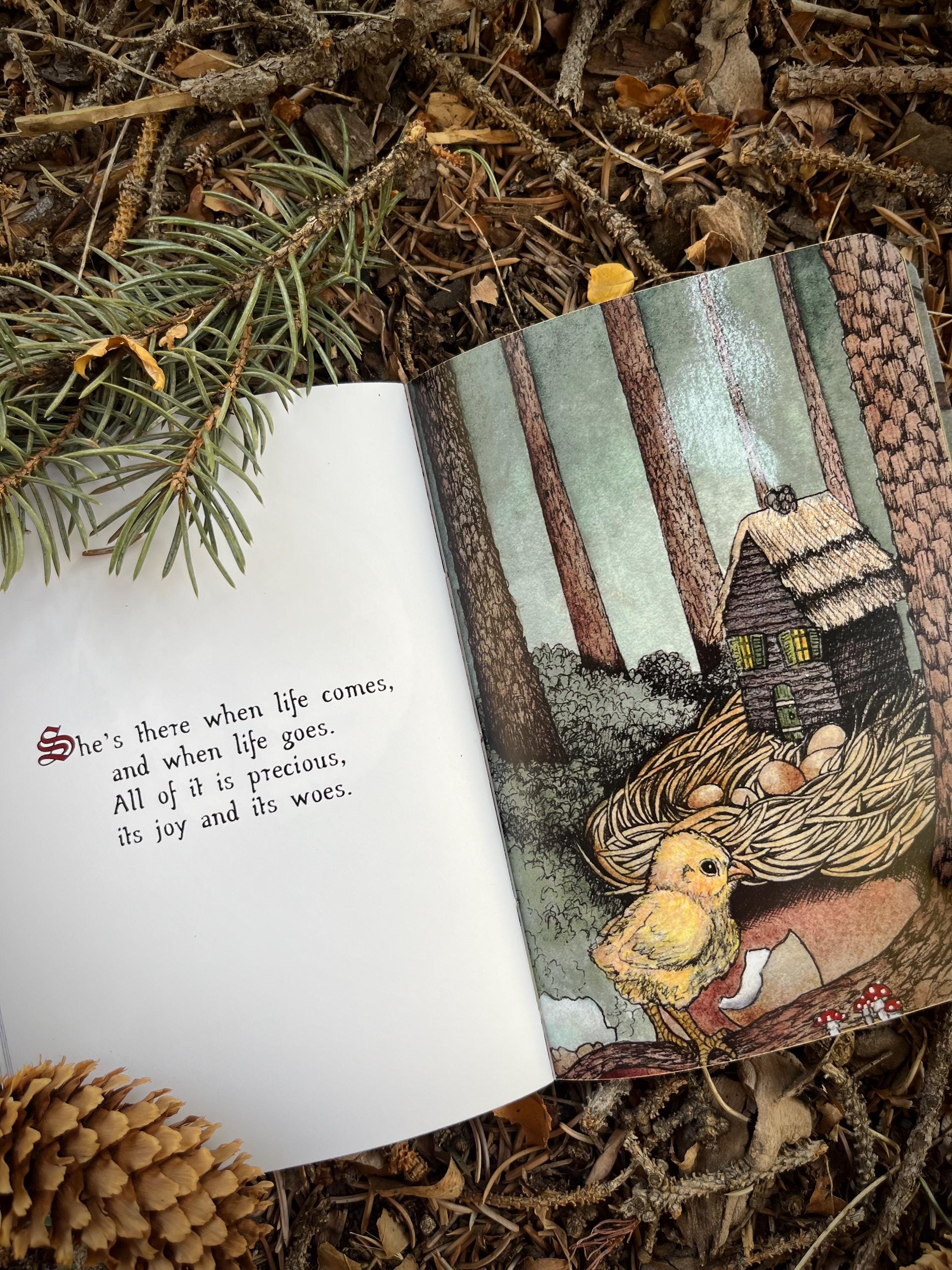 This little picture book was written and hand-illustrated by yours truly, Annie Dowdell. It is my gentle homage to the wildest witch of all, Baba Yaga. It features 12 whimsical watercolor paintings, and the text is a poem I wrote honoring the bony-legged Witch of the Wood. Everything I write for picture books is intended to be shared orally with an easeful and engaging whimsical flow. Why even write a picture book if it isn't fun to read and hear?? The goal of all my books is to give the listener a felt sense of connection with nature, wonder, and the liminal... our animate world.